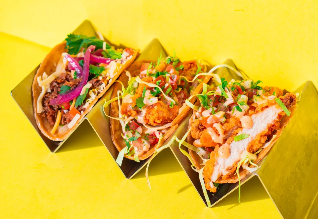 Med en Standard Pakke, får du 3 forskellige gourmet tacos: Vi serverer 2 tacos med valgfri kød (oksekød, kylling eller svinekød) og 1 vegetar. Der vil være tag-selv salsa og nachos. Der er mulighed for tilkøb af guacamole og taco med fisk. Vi tilbyder også forret og dessert. Kontakt os for et skræddersyet tilbud.